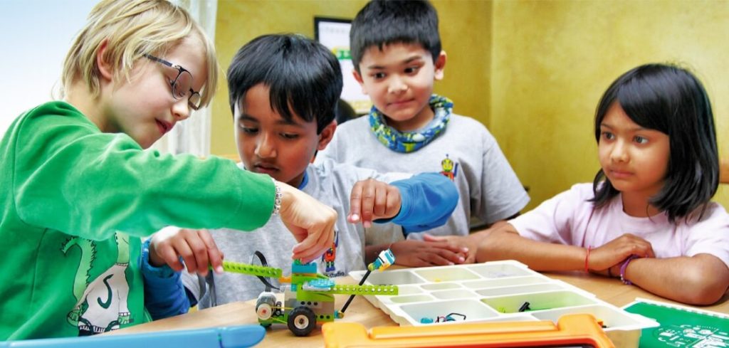 Die Finger des siebenjährigen Quinn bewegen sich über den großen Bildschirm vor ihm. Er programmiert gerade einen Befehl während der gleichaltrige Niharsh am Tisch nebenan sitzt und am Lego-Roboter baut. Die beiden lernen gerade spielerisch den Umgang mit Motoren und Sensoren an Lego WeDo mit einem selbstgebauten Roboter, an dem Geschwindigkeit, Reibung und Zugkraft veranschaulicht wird. Es ist bereits ihr vierter Besuch im neueröffneten Robo-Studio von Detlev Barthel und seiner Familie. „Mir gefällt es, die Sachen zu programmieren“, sagt Quinn und Niharsh fügt hinzu: „Ich finde es toll, dass die Roboter sich so bewegen.“ Seit Mitte März werden im Robo-Studio Kurse für Kinder ab fünf Jahren angeboten, die sich auf die Fächer Mathematik, Informatik, Naturwissenschaft und Technik fokussieren.